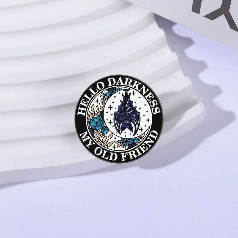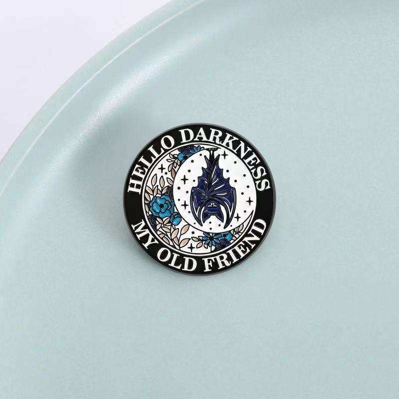 เข็มกลัดโลหะผสมสังกะสีชุบดำแบบนิกเกิล ลายเพลงพื้นบ้านแนวกอธิค ค้างคาว ดอกไม้ ต้อนรับความมืด เพื่อนเก่าของฉัน