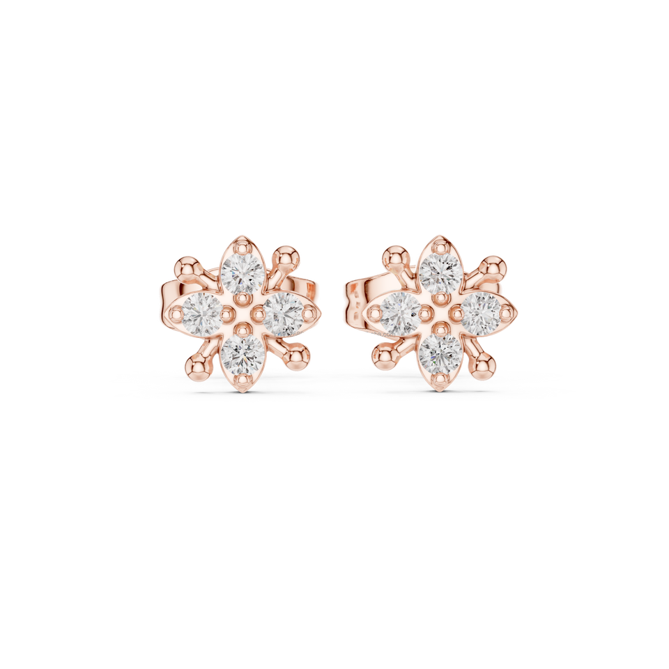ตุ้มหูสีทอง10K ลายดอกไม้ลูกบาศก์เซอร์โคเนียสำหรับเด็กผู้หญิงเครื่องประดับของขวัญวันเกิด