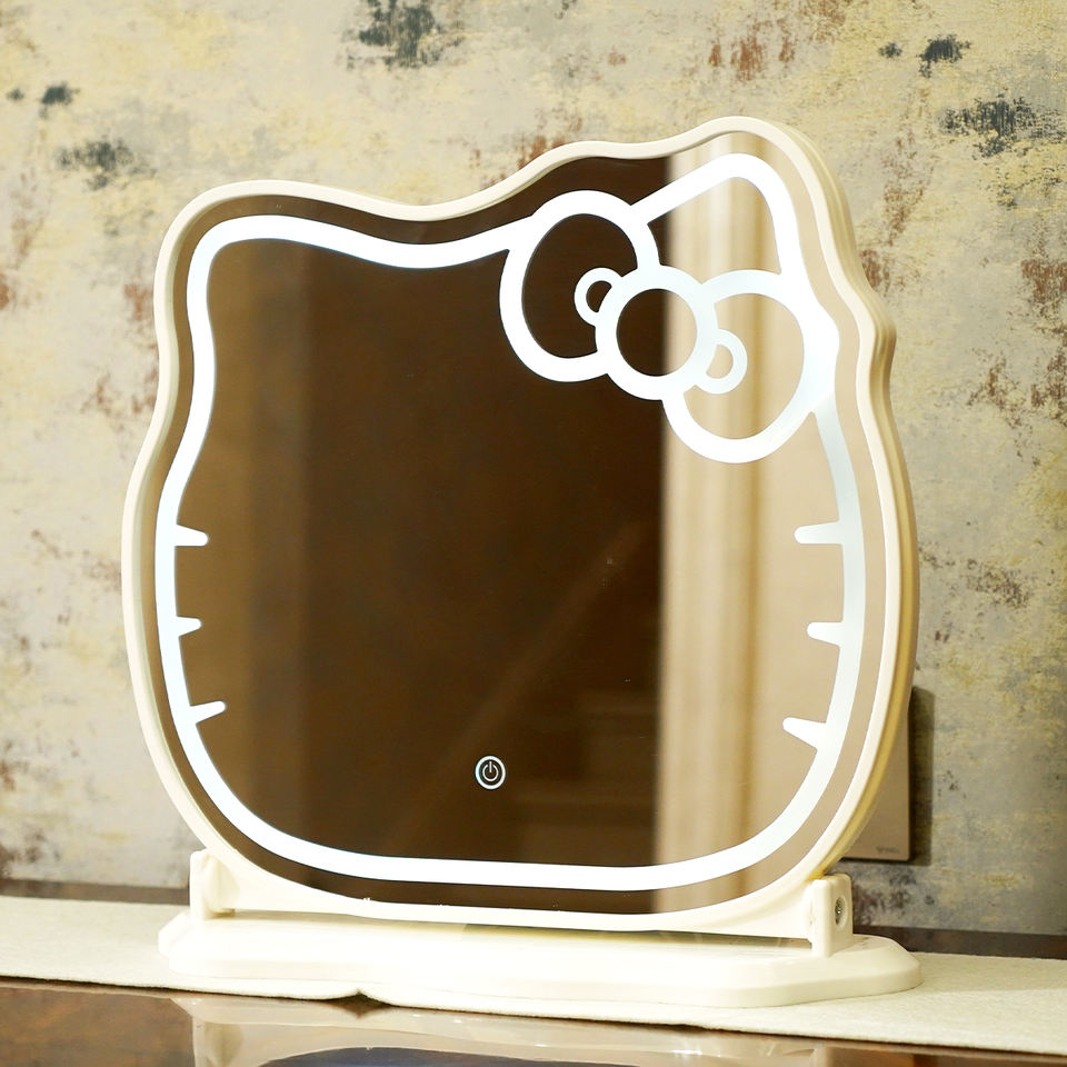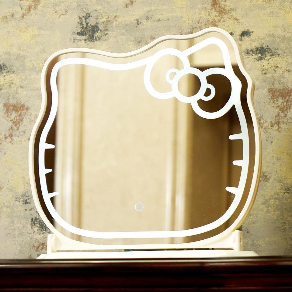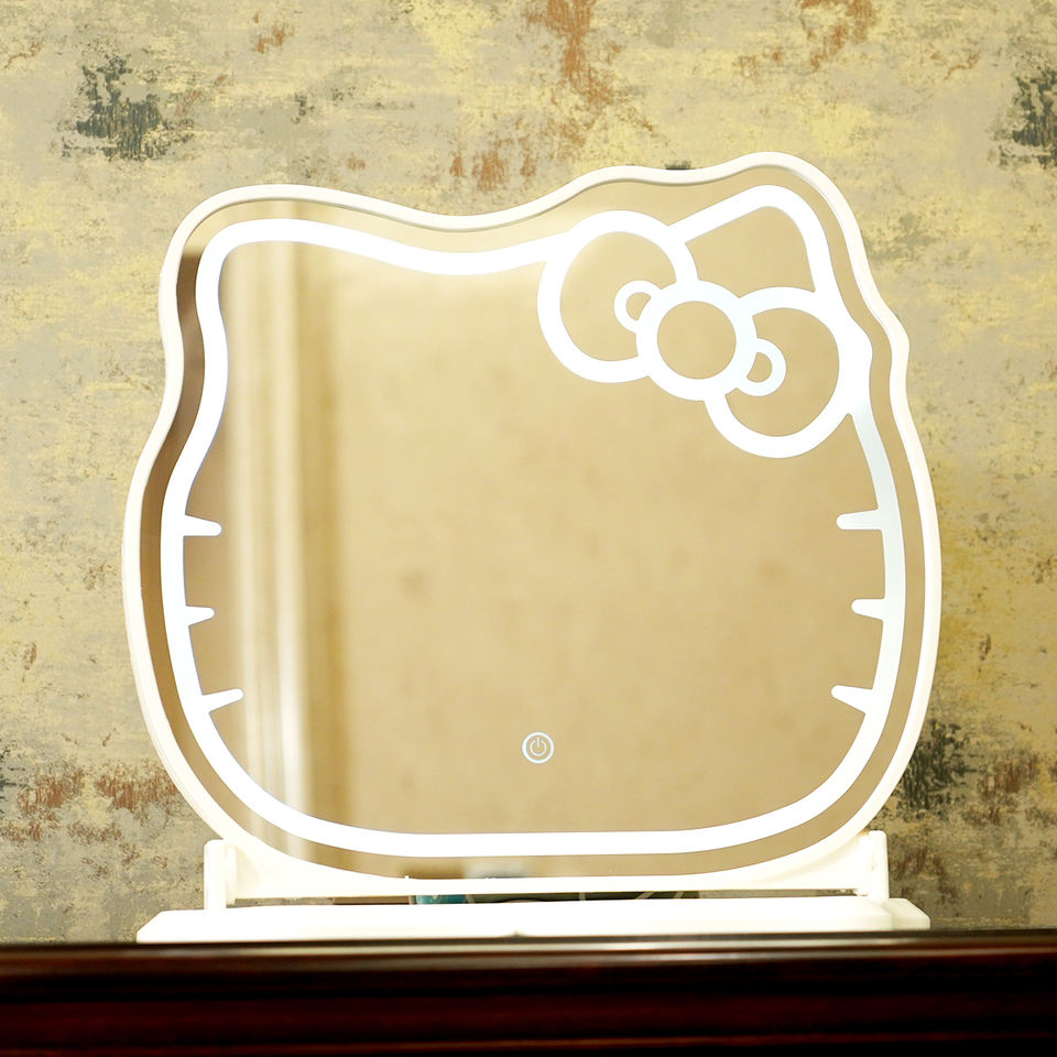 กระจก LED ลายเฮลโล คิตตี้ แบบนีออน สไตล์อนิเมะ สำหรับตกแต่งบ้าน ห้องนั่งเล่น ใช้แต่งหน้า พร้อมสวิตช์สัมผัส