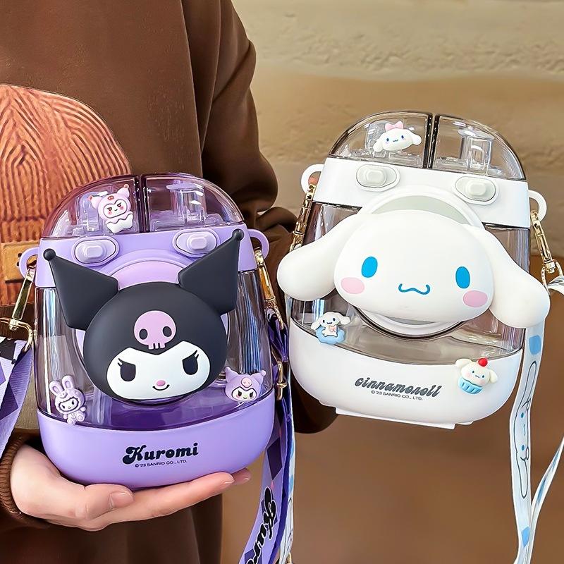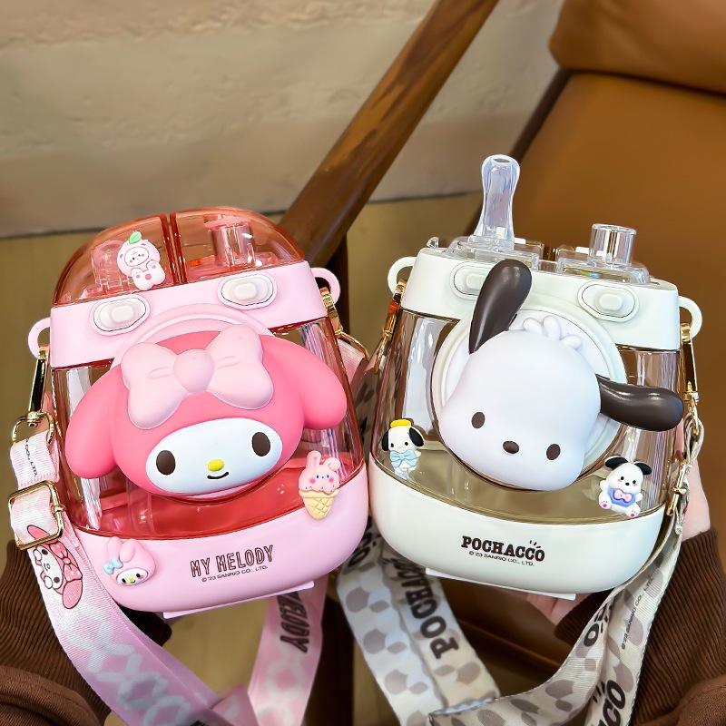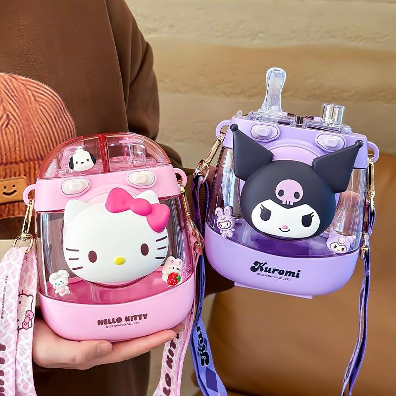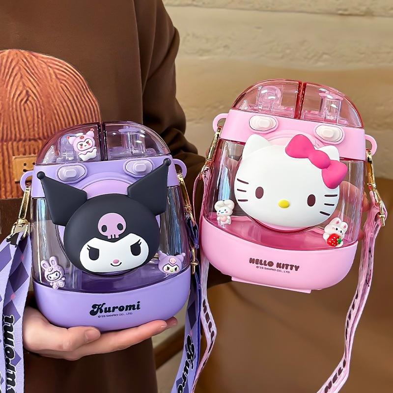 แก้วพลาสติกเฮลโลคิตตี้พร้อมสายสะพาย ขวดน้ำการ์ตูนความจุขนาดใหญ่สำหรับเด็กทุกเพศ