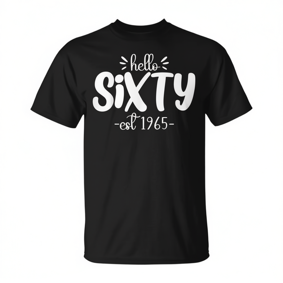 เสื้อยืด Hello Sixty Est 1965 ของขวัญวันเกิดครบรอบ 60 ปี สำหรับผู้ใหญ่ คอกลม แขนสั้น พิมพ์ลายซิลค์สกรีน ไซส์ S M L XL