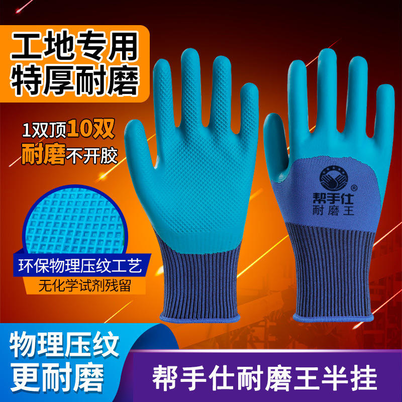 ถุงมือช่วยงานแบบเต็มนิ้ว ยางลายเกล็ดปลา 13 เย็บ ทนต่อการเสียดสี สำหรับงานก่อสร้าง โลจิสติกส์ และบริการขนย้าย