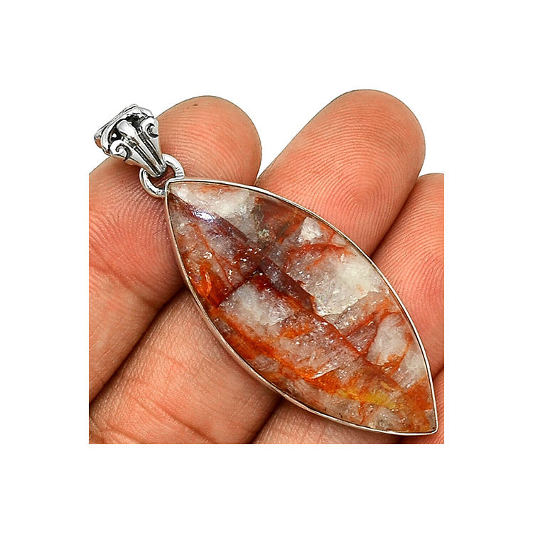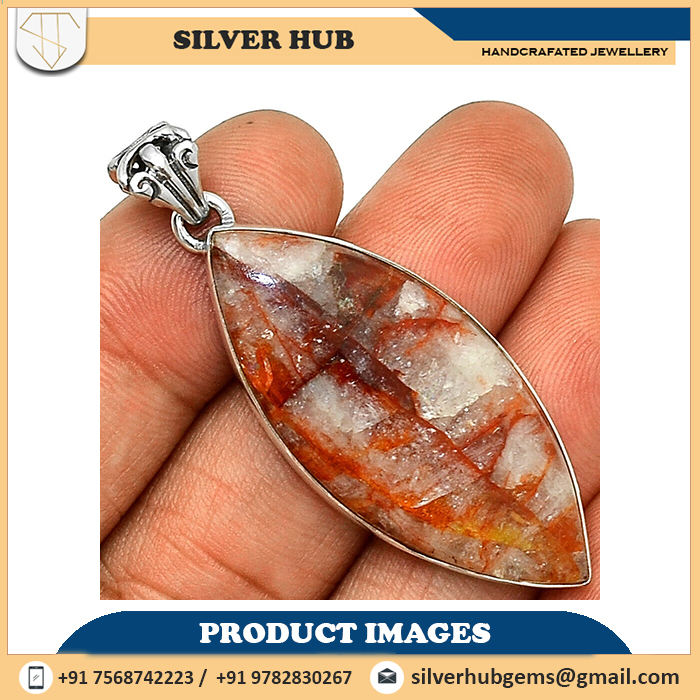 925พลอยควอตซ์ hematoid จี้เงินแท้ทำด้วยมือพร้อมฐานหนามเตยจี้แฟชั่นสำหรับผู้หญิง