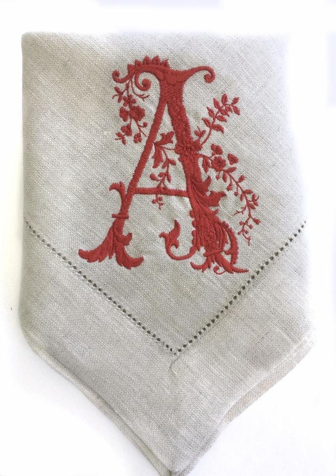 Hemstitch ผ้าเช็ดปากชาคุณภาพสูงผ้าลินินปักด้วยมือลายอักษรย่อสำหรับดินเนอร์สำหรับงานแต่งงาน