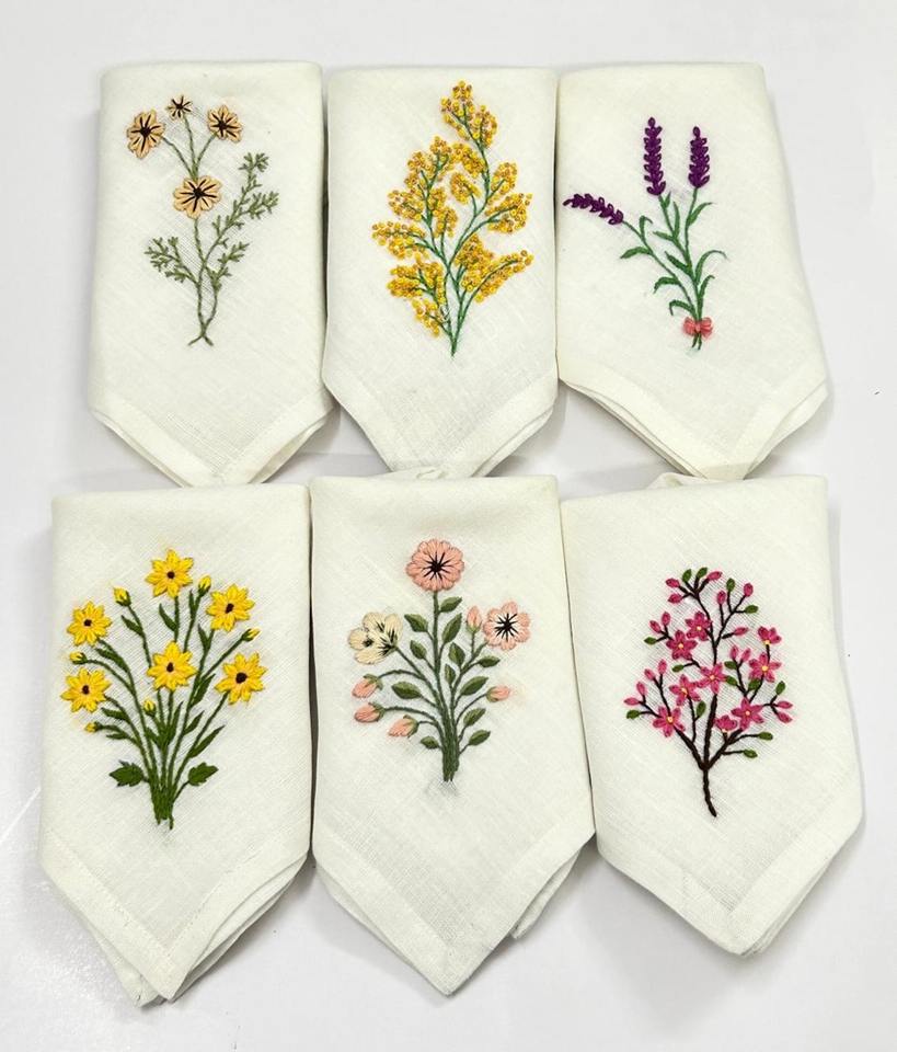 Hemstitch ผ้าเช็ดปากชาสีขาวผ้าลินินสไตล์ญี่ปุ่นผ้าคอตตอนลินินปักด้วยมือกำหนดโลโก้60x60ซม.