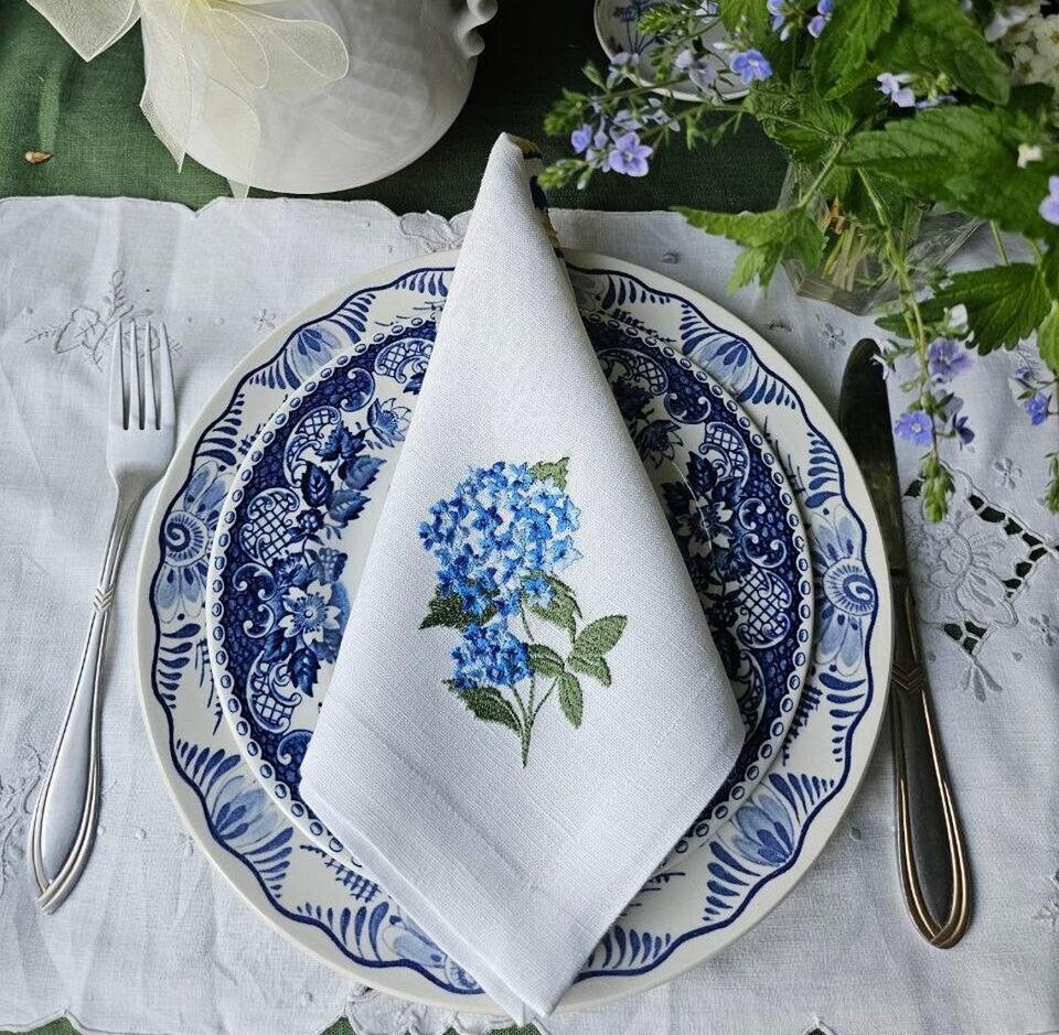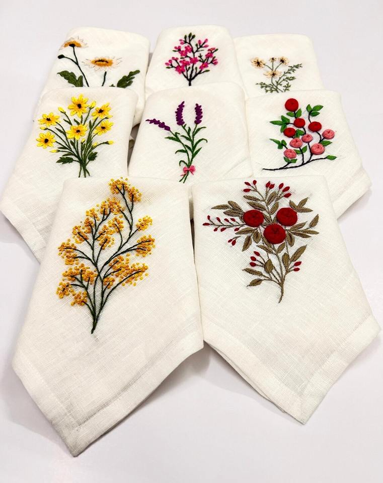Hemstitch ผ้าเช็ดปากชาผ้าลินินเนื้อละเอียดสีขาวสำหรับโต๊ะอาหารผ้าลินินปักด้วยมือแบบโมโนแกรมสำหรับงานแต่งงาน