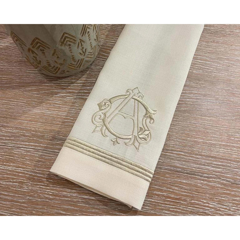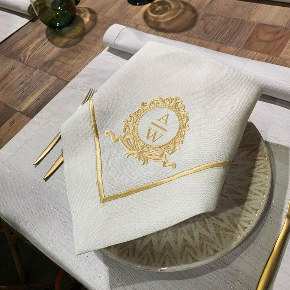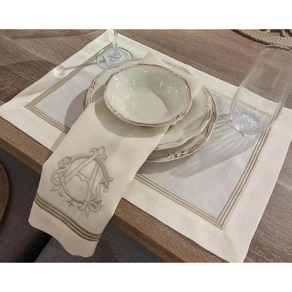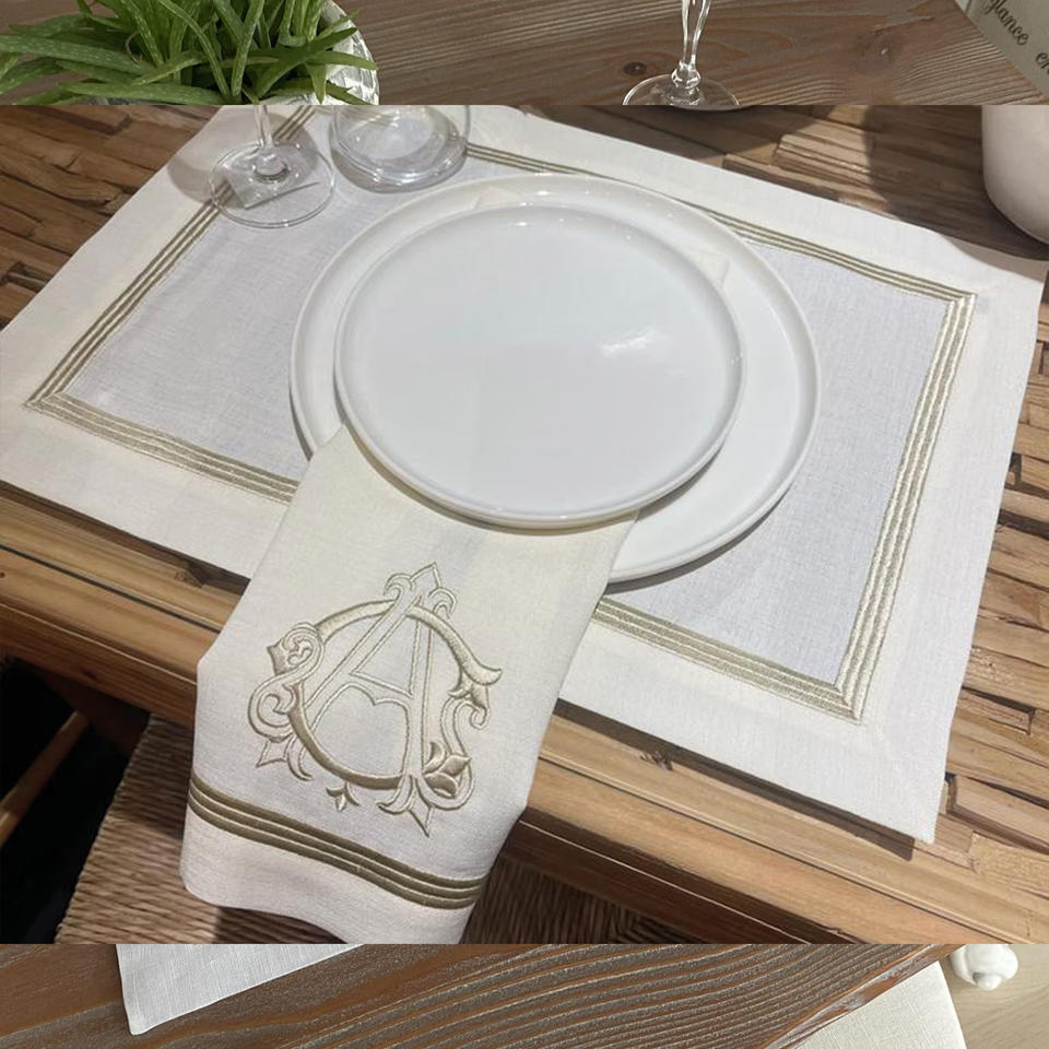 Hemstitch ผ้าเช็ดปากชาสีขาวโต๊ะรับประทานอาหารชั้นดีผ้าลินินแบบโมโนแกรมสำหรับมื้อเย็นอุปกรณ์เสริมผ้าเช็ดปาก