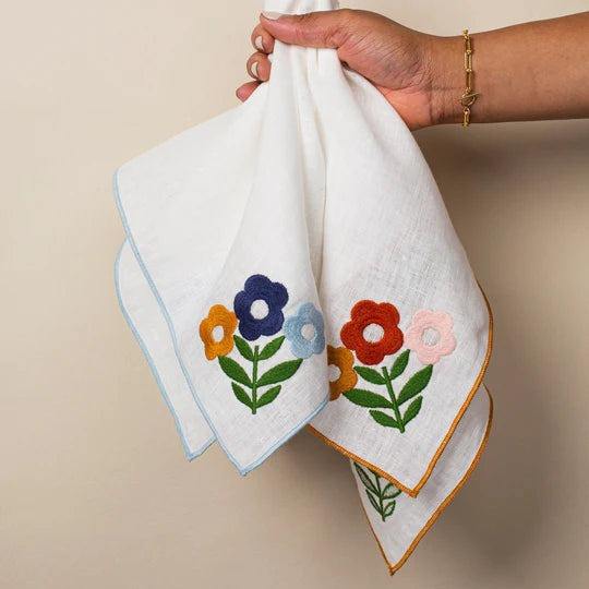 Hemstitch ผ้าเช็ดปากชาผ้าลินินเนื้อละเอียดสีขาวสำหรับโต๊ะอาหารผ้าลินินปักด้วยมือแบบโมโนแกรมสำหรับงานแต่งงาน