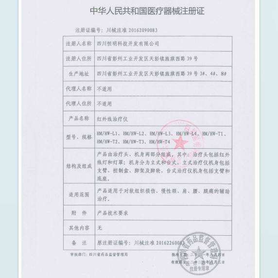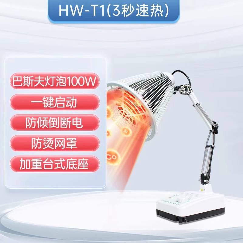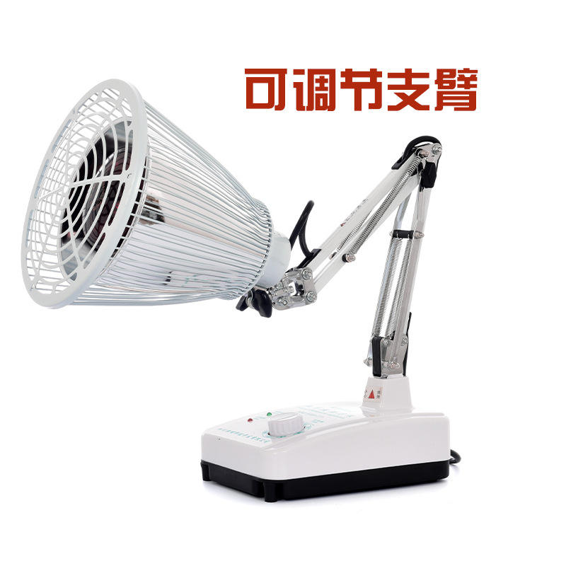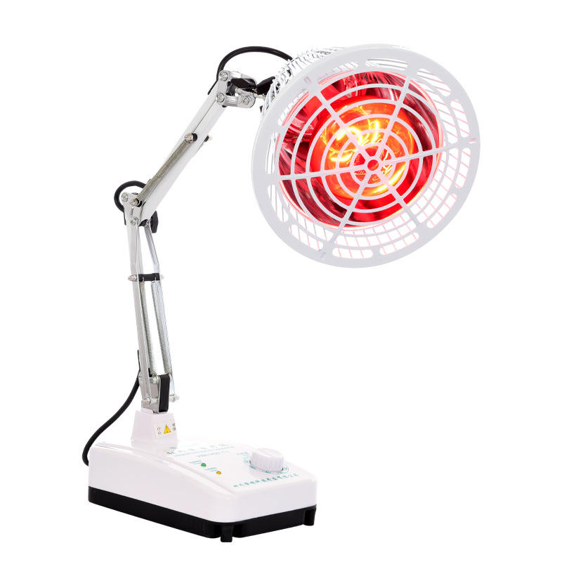 หลอดอินฟราเรดทางการแพทย์ Hengming หัวหมุนได้ 360 องศา อุปกรณ์บำบัดที่บ้าน ตัวเครื่องทำจากพลาสติกสีขาว