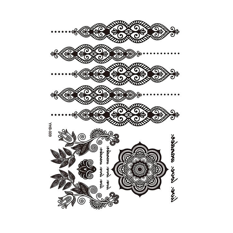 รอยสักชั่วคราวลายเฮนน่า ลายดอกไม้ ใบไม้ พระจันทร์ ดาว ลายสักชั่วคราวสีดำ สติ๊กเกอร์รอยสักชั่วคราว