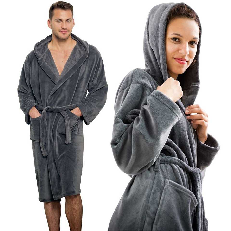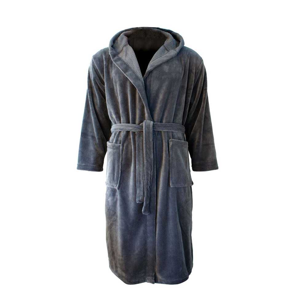 ชุดคลุมอาบน้ำผ้าฟลีซสีเทาแอนทราไซต์สำหรับผู้ชายของเฮนรี่ ชุดอาบน้ำพรีเมียมเพื่อความสบาย