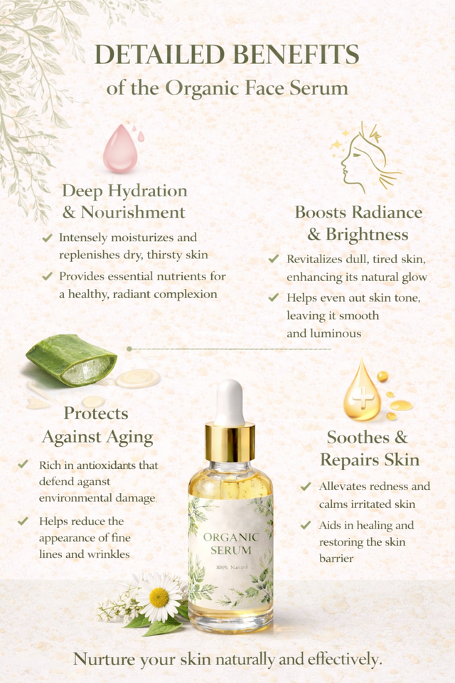 เซรั่มบำรุงผิวหน้าสูตรสมุนไพรออร์แกนิค ว่านหางจระเข้ คอลลาเจนจากกุหลาบ วิตามินอี ช่วยลดเลือนริ้วรอย ควบคุมสิว ผิวขาวกระจ่างใส ฟื้นฟูผิว รับผลิตแบบ OEM/ODM