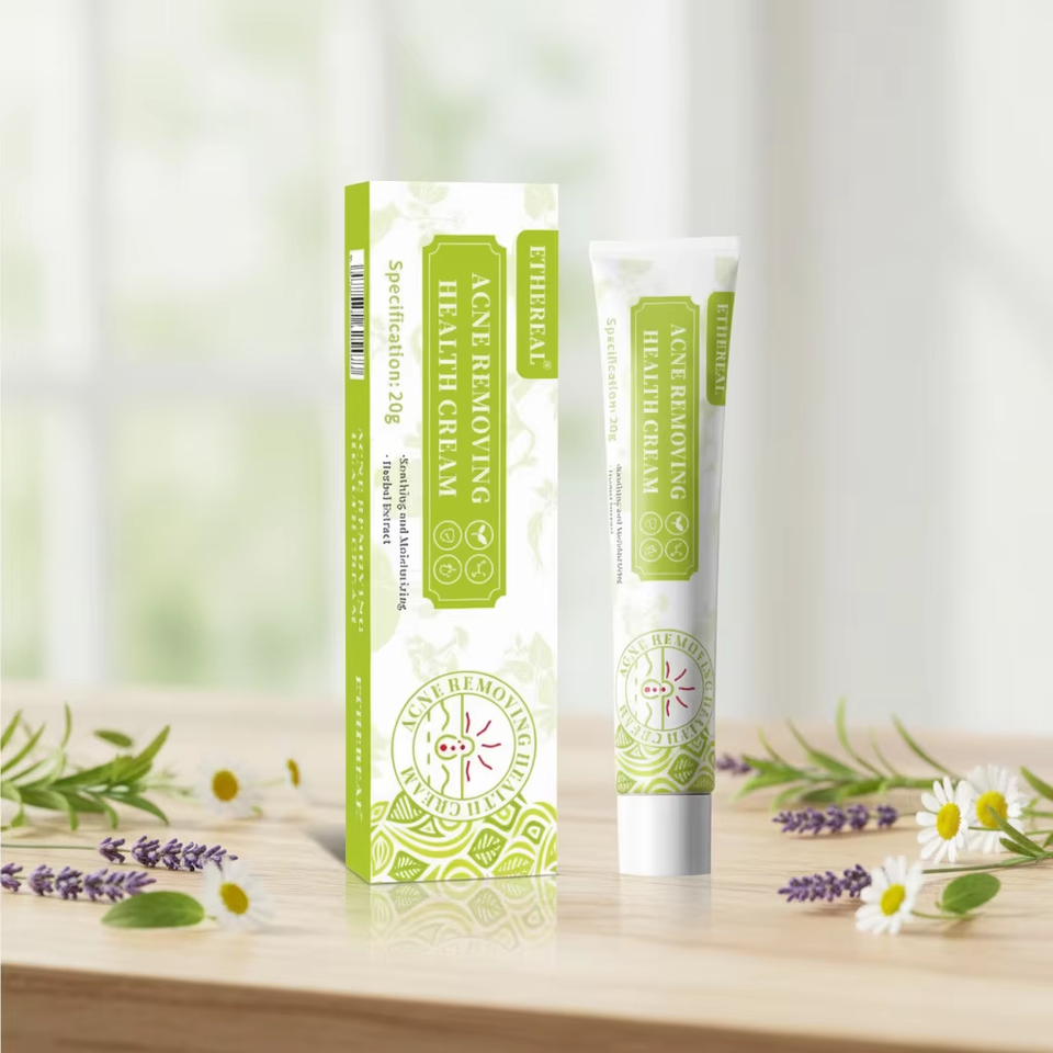 ครีมสมุนไพรบำรุงผิวสำหรับสิวและเร่งการเจริญเติบโตของเส้นผม บรรจุในหลอด
