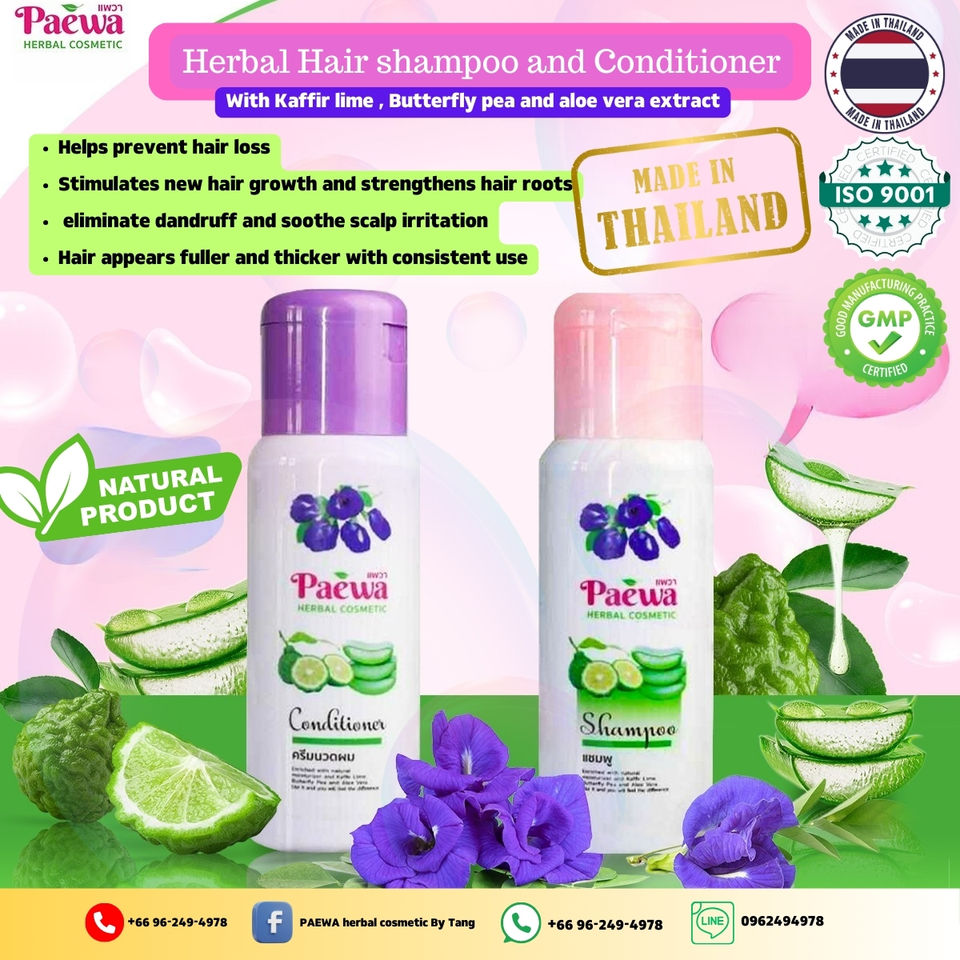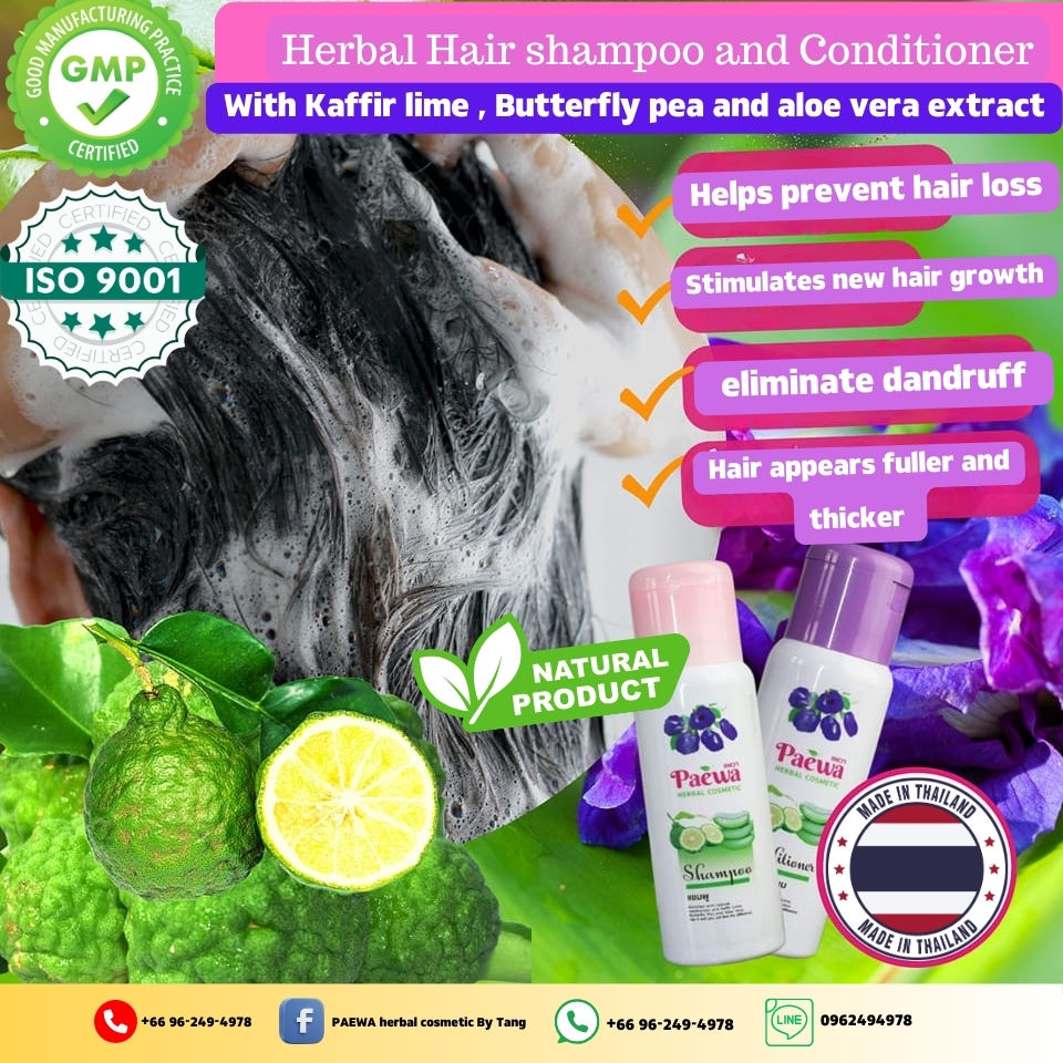 แชมพูสมุนไพรผสมสารสกัดมะนาวคาฟีร์ ถั่วผีเสื้อ และว่านหางจระเข้ 250 มล. บำรุงเส้นผมให้แข็งแรง สำหรับใช้ทุกวัน
