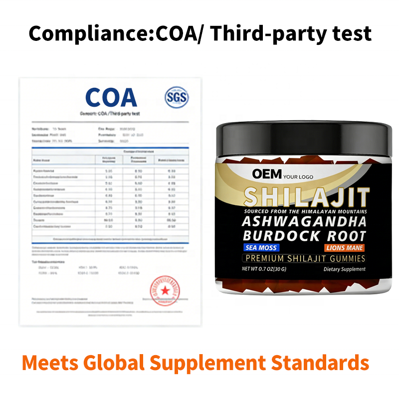 อาหารเสริมสมุนไพรชิลลาจิตแบบกัมมี่ คลังสินค้า FBA ที่ปรับปรุงให้เหมาะสม พร้อมจัดส่งที่มั่นคงสำหรับผู้ขาย Amazon FBA ได้รับการรับรองมาตรฐาน COA ผ่านการทดสอบโดยบุคคลที่สาม