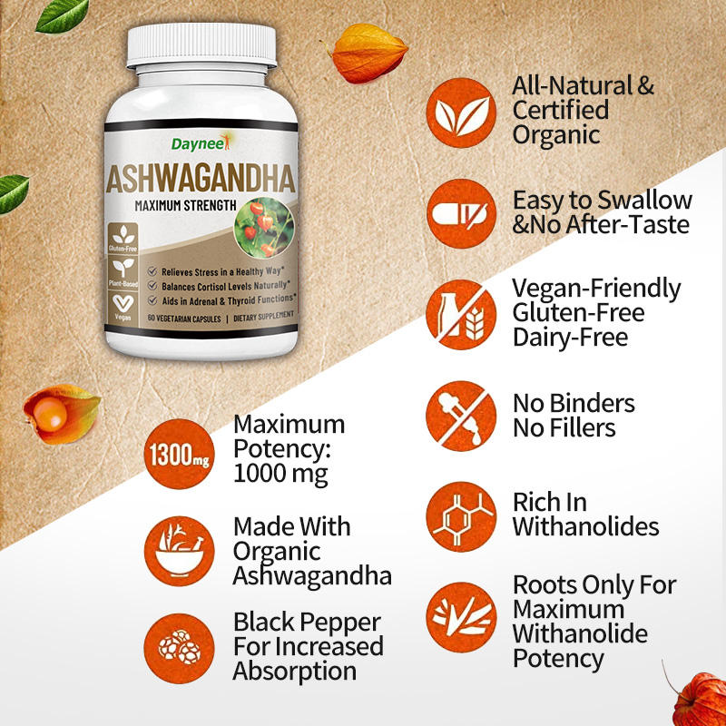 สมุนไพร ashwagandha msximum Strength บรรเทาความเครียดระดับคอร์ติซอลที่ช่วยในการเพิ่มความแข็งแรงของต่อมหมวกไต