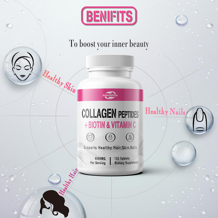 เฮิร์บไลฟ์ หรือผลิตภัณฑ์เสริมอาหารแบบปรับแต่งได้ ช่วยบำรุงผม เล็บ และผิวให้แข็งแรง ไบโอตินและวิตามินซี คอลลาเจนเปปไทด์ชนิดเม็ด