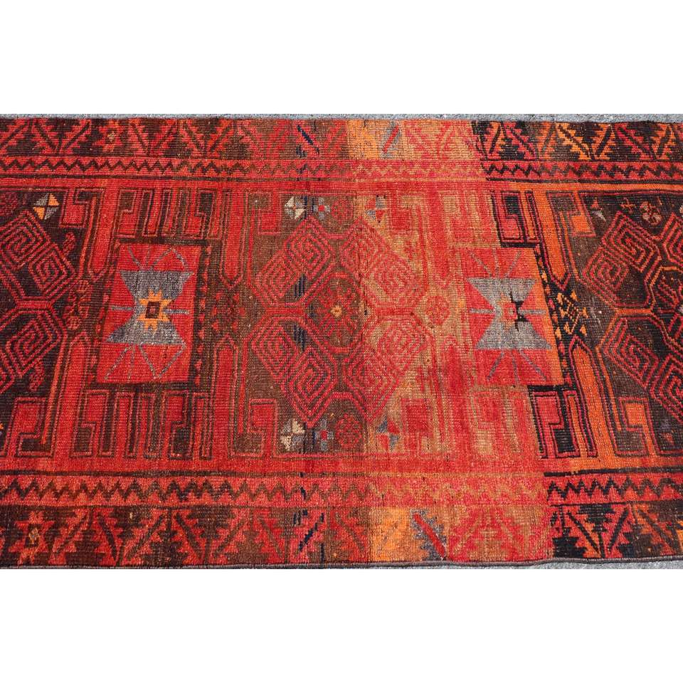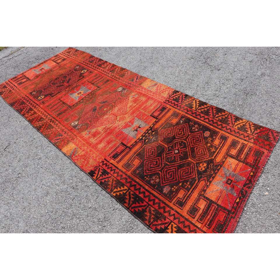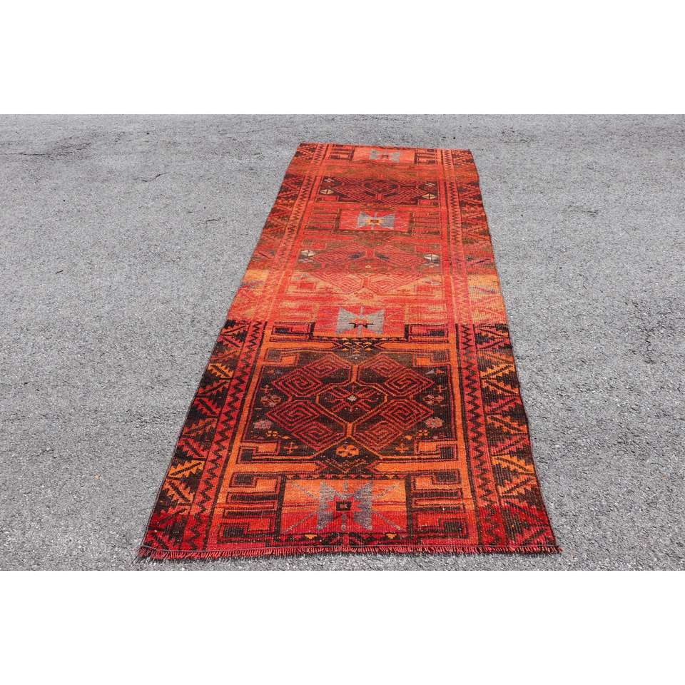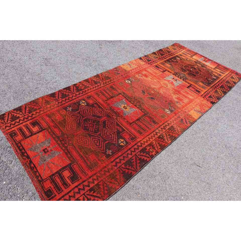 พรมเฮอร์กี ขนาด 3.5x8.7 ฟุต พรมตุรกี พรมลายปะติดสีแดง ทำจากขนสัตว์