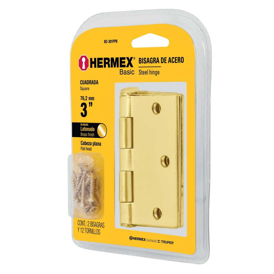 Hermex Basic BC-301PPB Pivot Hinge 3' Brass-Plated Steel Square Hinge Soft Close Feature Modern Design for Entry Wooden Door
