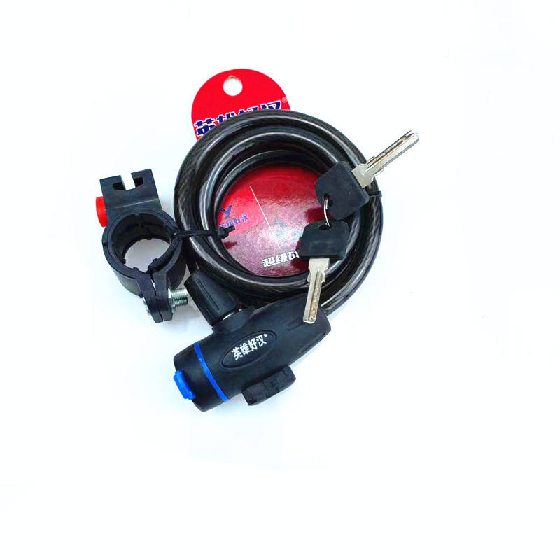 ตัวล็อคจักรยานฮีโร่ิคพร้อมวงแหวนตาข่ายลวด ตัวล็อคจักรยานเสือภูเขาแบบมีกุญแจ โลหะทนทาน สีดำ