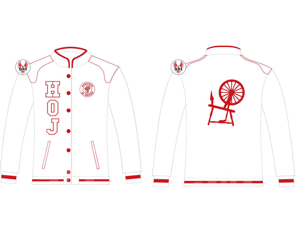 แจ็คเก็ตวาร์ซิตี้แบบสั่งทำพิเศษสำหรับนักแข่งรถเจริโค "ฮีโรอีนส์ ออฟ เจอริโค" | เสื้อแจ็คเก็ตแข่งรถผ้าฝ้ายทวิลปักลาย HOJ Masons แบบสั่งทำพิเศษ