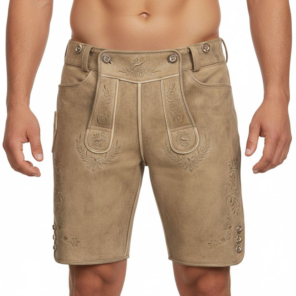 กางเกงขาสั้นผู้ชายลายสก็อตหนังแพะบาวาเรียนเอวกลาง ระบายอากาศได้ดี ติดกระดุม มีทุกขนาด สำหรับเทศกาลอ็อกโทเบอร์เฟสต์