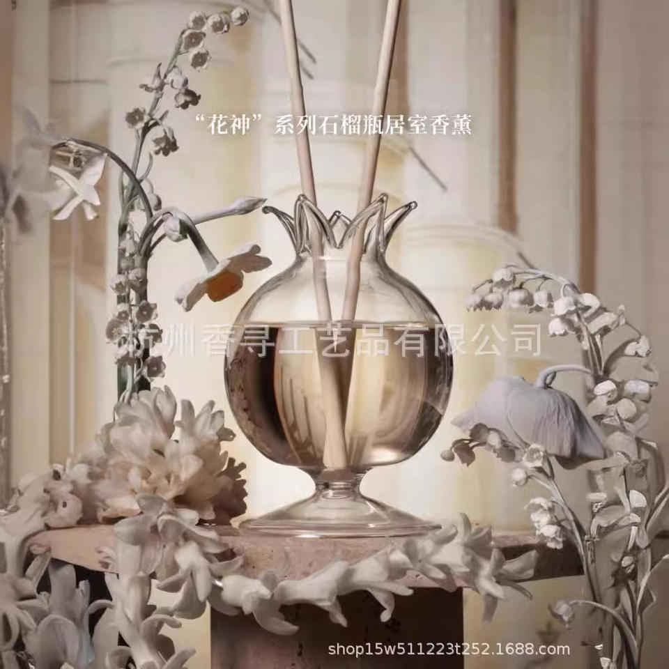 น้ำหอมปรับอากาศแบบก้านไม้หอม กลิ่นทับทิม รุ่น Heshes Flora Series บรรจุขวดแก้ว สำหรับตกแต่งภายในบ้าน ของขวัญ สามารถปรับแต่งได้ รับผลิตแบบ OEM