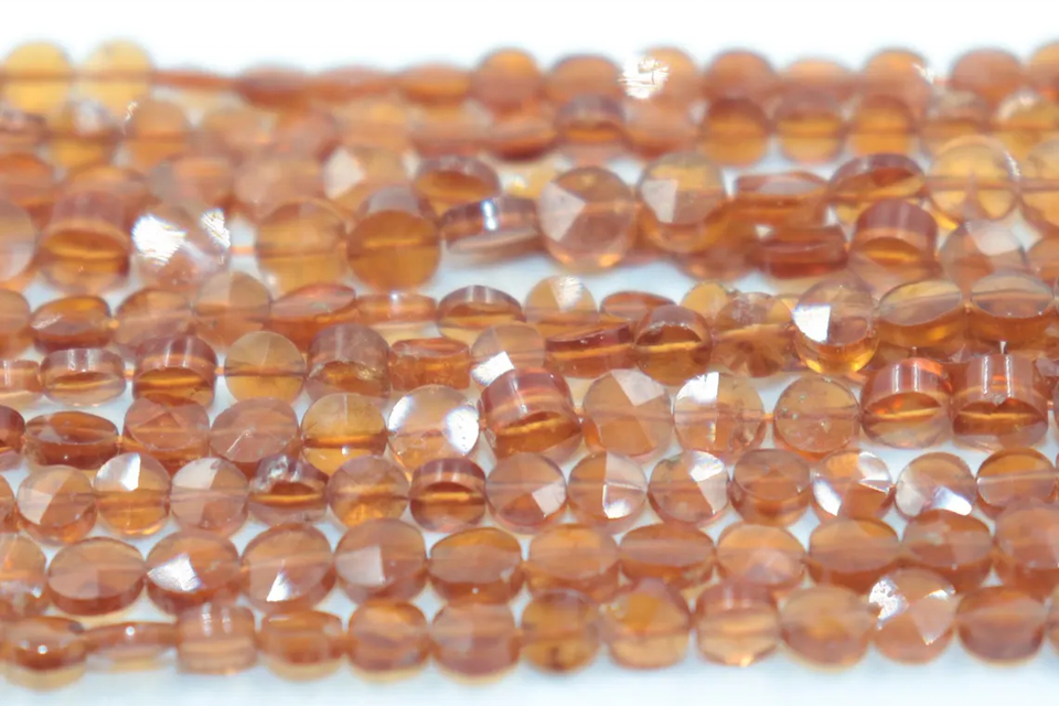 ลูกปัดโกเมนเฮสโซไนต์ทรงเหรียญเจียระไน