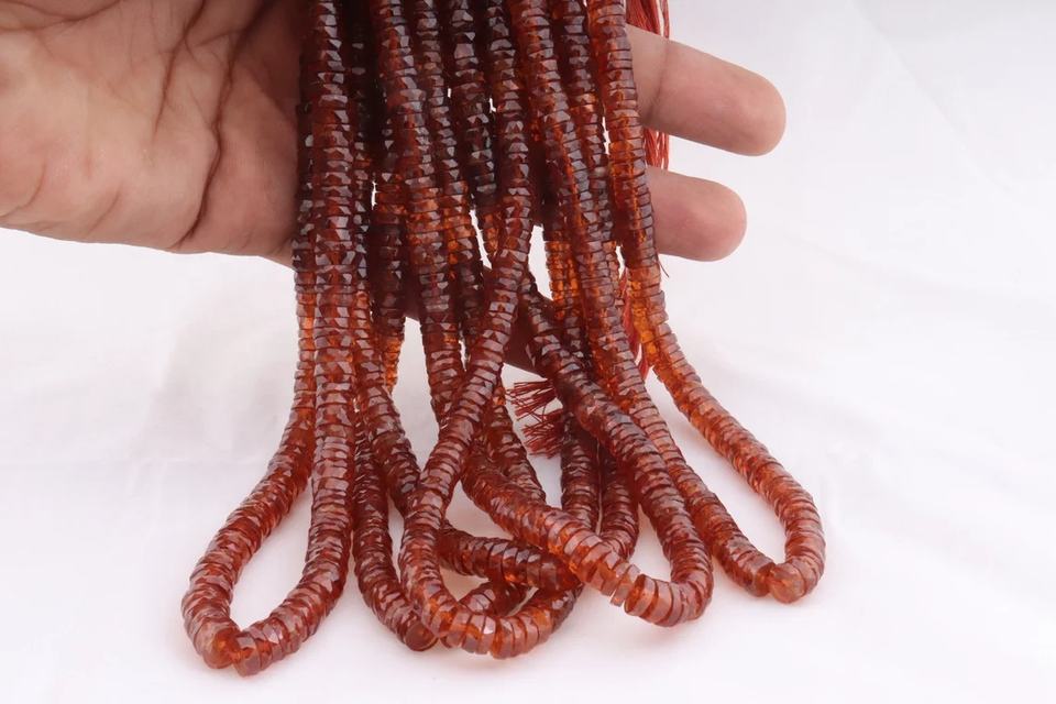 ลูกปัดรูปทรงยางรถยนต์เหลี่ยมเพชรพลอยโกเมนเฮสโซไนท์