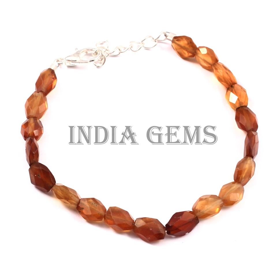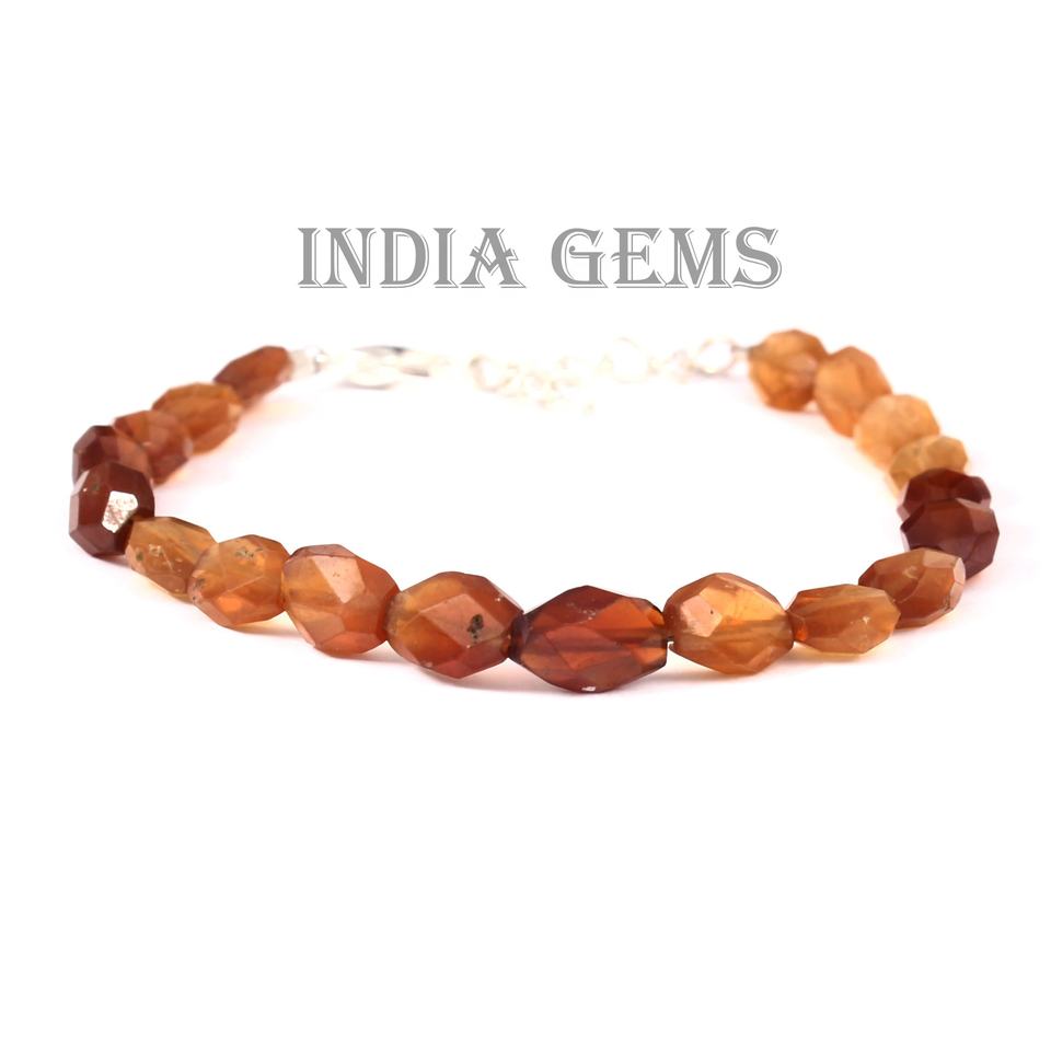 โกเมนเฮสโซไนท์สำหรับสร้อยข้อมือแบบคลาสสิกเครื่องประดับเงินประดับด้วยลูกปัดหกเหลี่ยมเจียระไนแบบปรับได้สำหรับเป็นของขวัญที่ดี