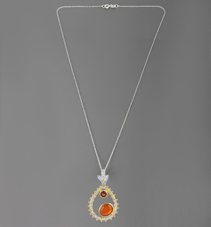 Hessonite พลอยเสน่ห์ขายส่งชุบทองจี้บริสุทธิ์925จี้เงินเครื่องประดับปรับ