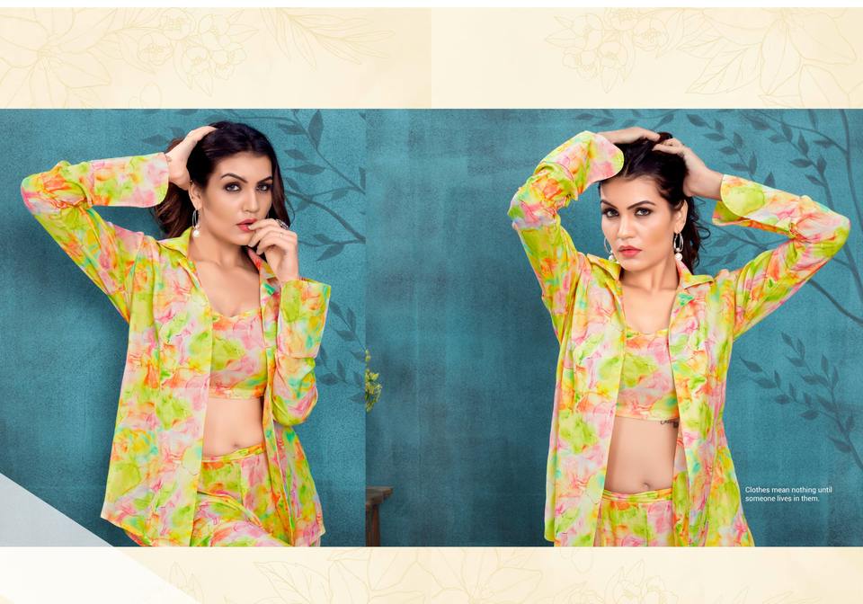 ชุดกางเกง Kurtis Co-Ord คุณภาพส่งออกของพรีเมี่ยมลาย้เหนียวเมอร์ลิน