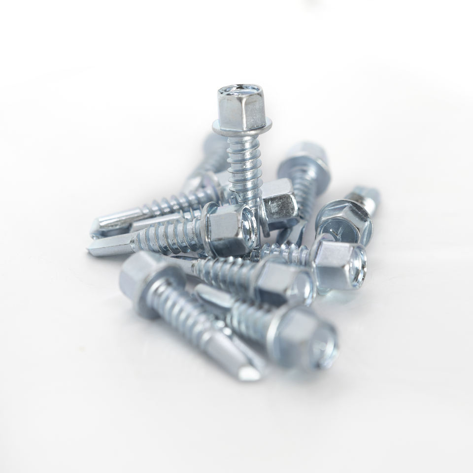 สกรูหัวหกเหลี่ยมเจาะเอง เกรด 8 เหล็กกล้าคาร์บอน ชุบสังกะสี/กัลวาไนซ์ ขนาดเมตริก สำหรับงานโครงสร้างเหล็กหลังคา รับผลิตตามแบบ OEM