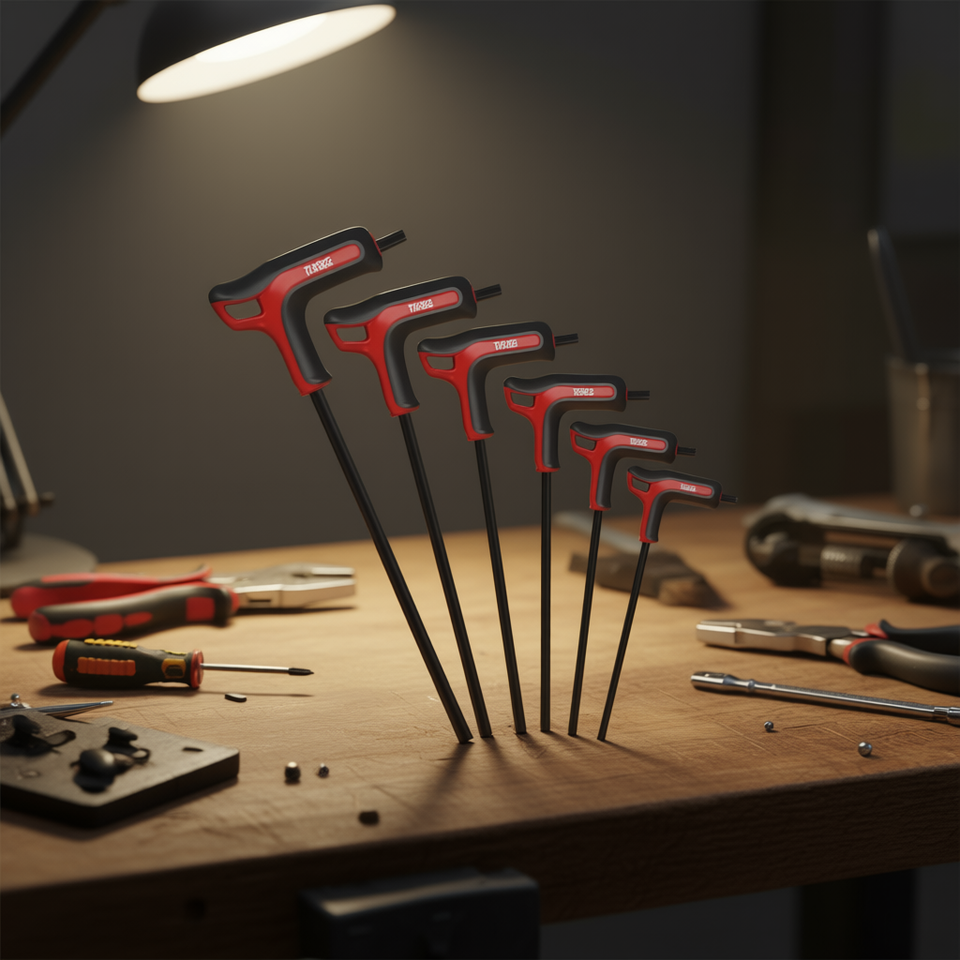 ชุดประแจหกเหลี่ยมเหล็กโครเมียมวาเนเดียมชุบโครเมียม 6 ชิ้น แบบด้ามตัว T สำหรับงานซ่อมที่ต้องการความแม่นยำ