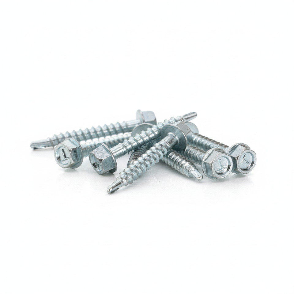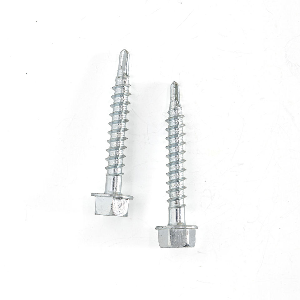 หัวแหวนหกเหลี่ยมภายนอกไดรฟ์หกเหลี่ยมสกรูเจาะด้วยตนเองชุบสังกะสี/ชุบสังกะสีด้วยตนเองสกรูคาร์บอนเหล็กนิ้วหยาบ