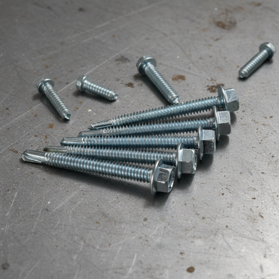 สกรูเจาะยึดตัวเองพร้อมหัวหกเหลี่ยมและแหวนรองโลหะในตัว (เมตริก/นิ้ว) เหล็กกล้าคาร์บอน ชุบสังกะสี/สังกะสีขาวคล้ายสีน้ำเงิน ระดับ 8