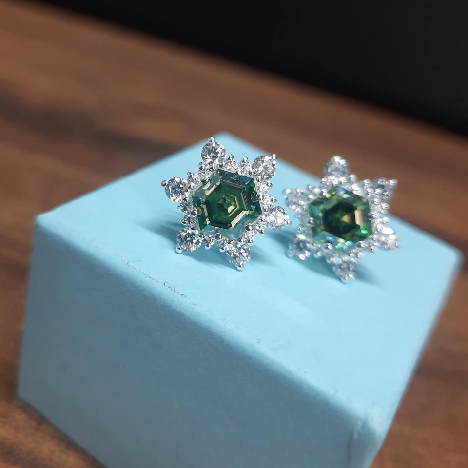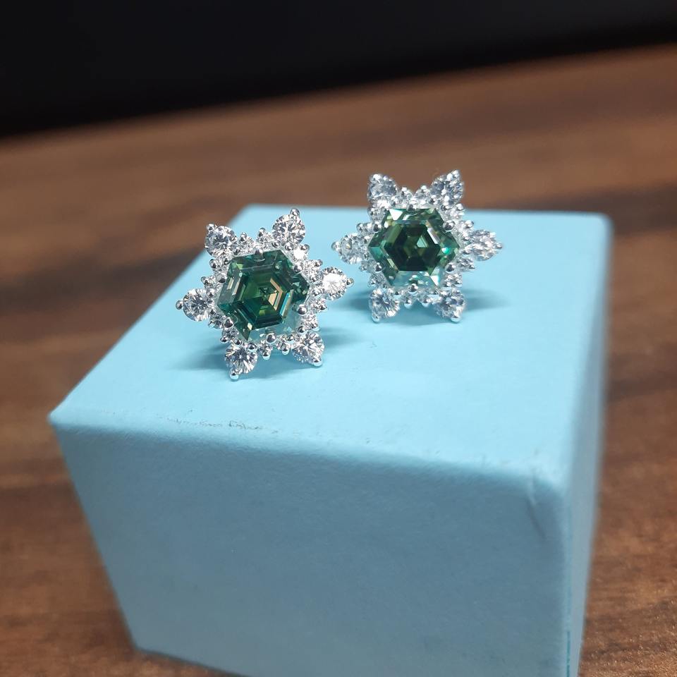 ต่างหูเพชรโมอิสซาไนต์ทรงหกเหลี่ยมสีน้ำเงินเขียว ดีไซน์เรียบหรู แฟชั่นทันสมัยสำหรับผู้หญิง ราคาประหยัด
