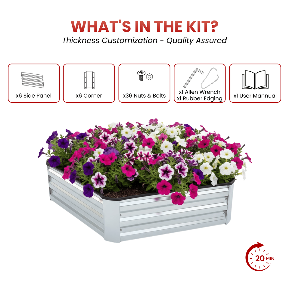 กระถางปลูกผักทรงหกเหลี่ยมยกพื้นสำหรับกลางแจ้ง ทำจากโลหะ สำหรับปลูกผัก ขนาดใหญ่ ชุบสังกะสี ตกแต่งบ้านสไตล์มินิมอล รุ่น GB024