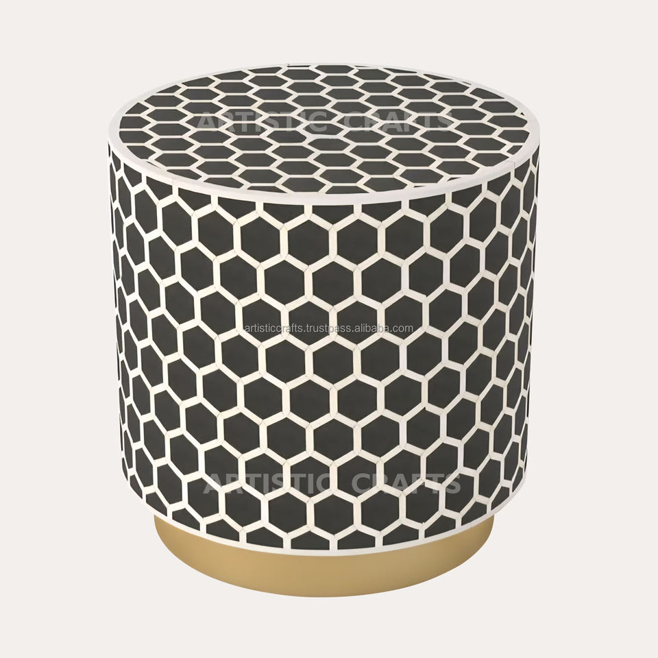 Hexagon Pattern Modern Design Antiqued Bone Inlay Stool for Home Living Room Bed room Garden and Bars