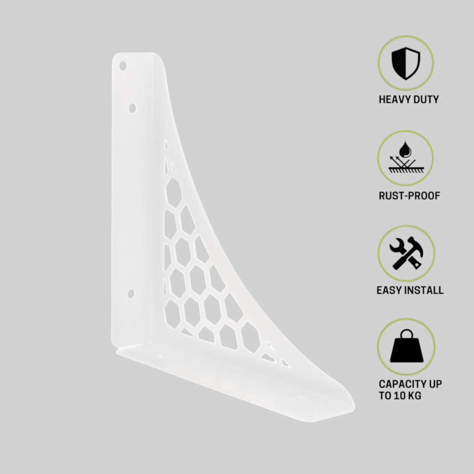 ชั้นวางของติดผนังไม้สีขาวรูปหกเหลี่ยมขนาดใหญ่ ดีไซน์สวยงาม สำหรับตกแต่งห้องนั่งเล่น ห้องนอน ห้องน้ำ