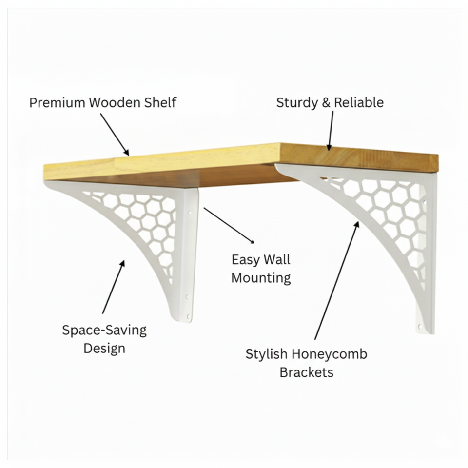 ชั้นวางของติดผนังไม้รูปหกเหลี่ยมสีขาวขนาดเล็ก ดีไซน์สวยงาม สำหรับตกแต่งห้องนั่งเล่นและห้องนอน