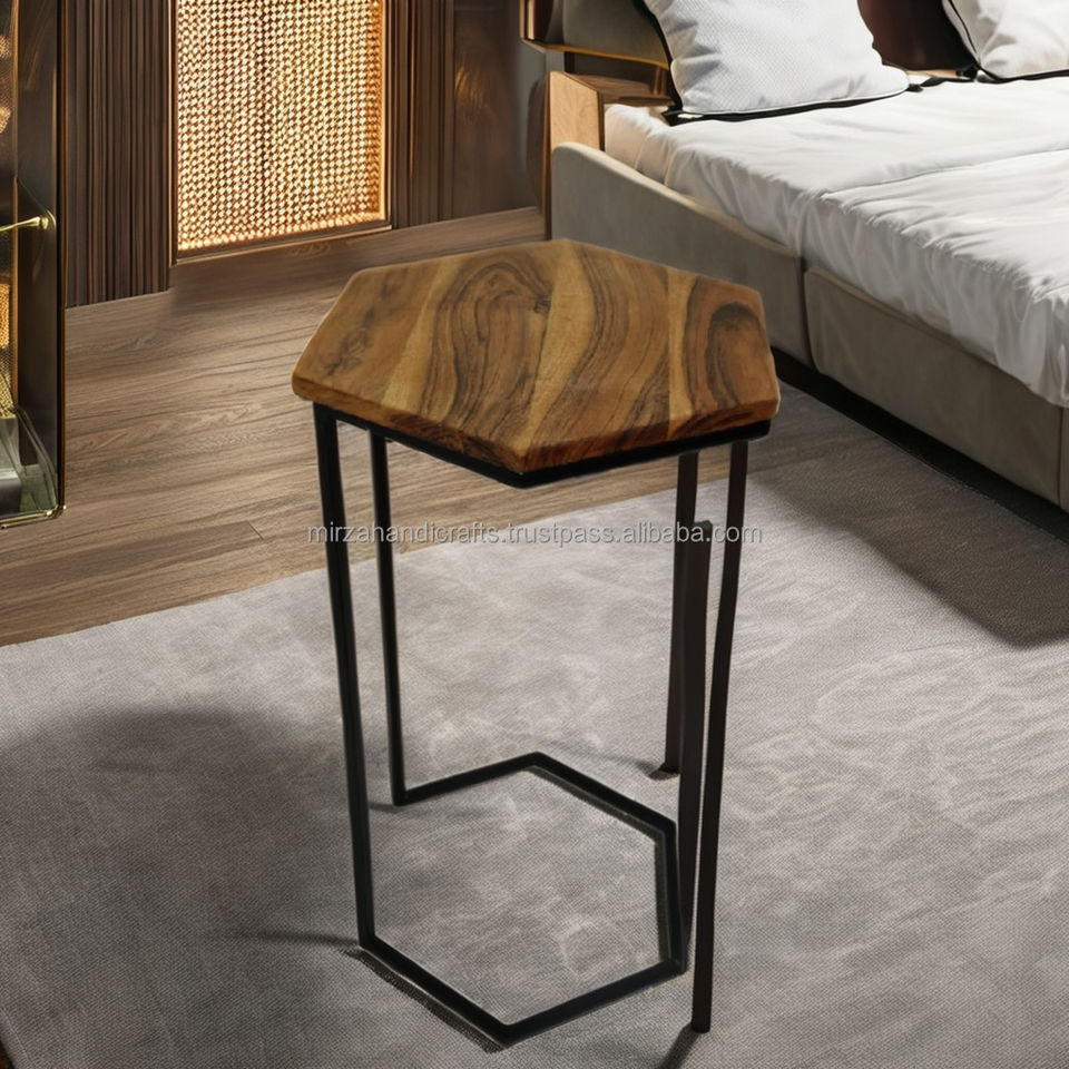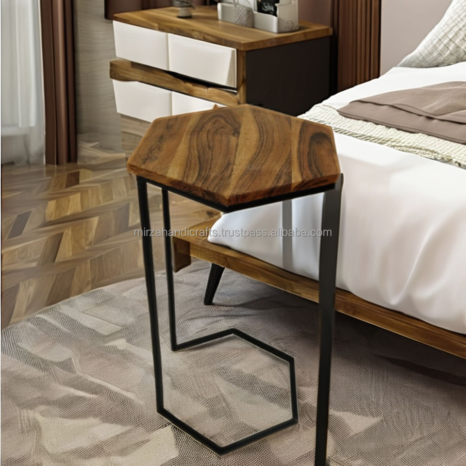 โต๊ะข้างเตียงทำจากไม้รูปหกเหลี่ยมเฟอร์นิเจอร์ไม้หรูหราทันสมัยสำหรับห้องนั่งเล่นห้องนอนสไตล์นอร์ดิกสไตล์เพนตาก้อน