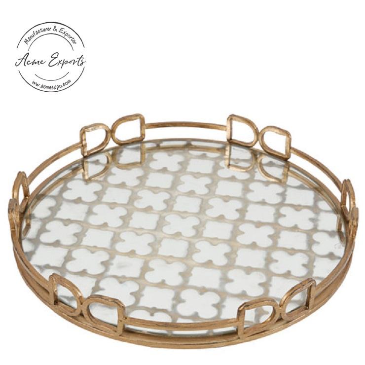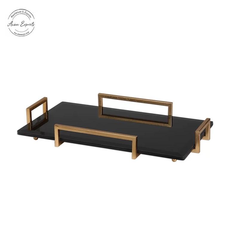 ถาดเสิร์ฟไม้ทรงหกเหลี่ยมพร้อมหูจับสีทอง ที่จัดระเบียบอย่างมีสไตล์สำหรับโต๊ะกาแฟ เคาน์เตอร์บาร์ ของตกแต่งบ้านที่สวยงาม