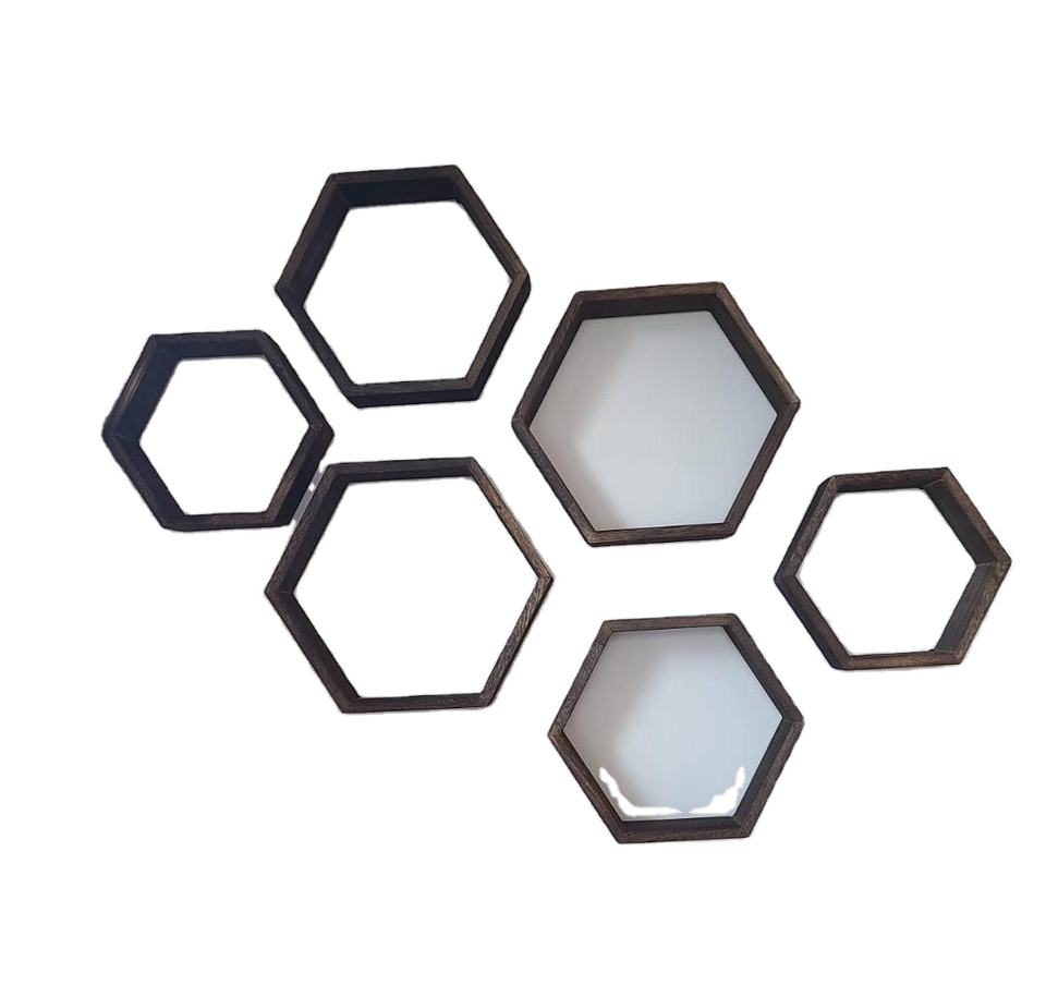ชั้นวางของหกเหลี่ยมแบบลอยตัวสำหรับบ้านไร่ชั้นวางของรังผึ้งเหมือนคุณไม้ติดห้องนั่งเล่นไม้กล่องสีธรรมชาติ