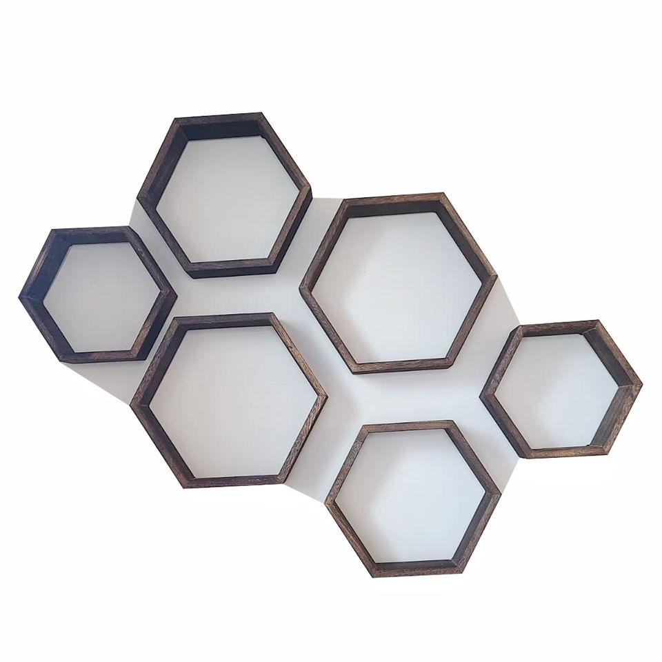 ชั้นวางของไม้หกเหลี่ยมลอย
