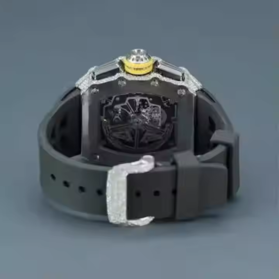 นาฬิกาแร็ปเปอร์ฮิปฮอปสำหรับผู้ชายกลไกอัตโนมัติทรงหกเหลี่ยมแบบกำหนดเอง