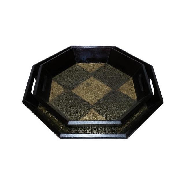 ถาดเสิร์ฟทำจากไม้ทรงหกเหลี่ยมถาดตกแต่งอาหารสีดำในโรงแรมร้านอาหารและห้องครัวในบ้าน