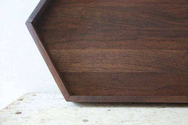 ถาดไม้วอลนัทหกเหลี่ยมผสมเฉดสีน้ำตาลและน้ำตาลถาดเสิร์ฟตกแต่งหรูหราจัดโต๊ะสำหรับบ้านสำนักงานและคาเฟ่