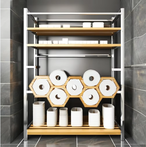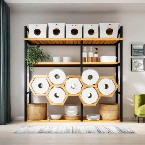 Hexagonal Wooden Wall Mounted Toilet Paper Holder Modern Honeycomb Design Tissue Storage Rack for Bathroom Decor from Vietnam
