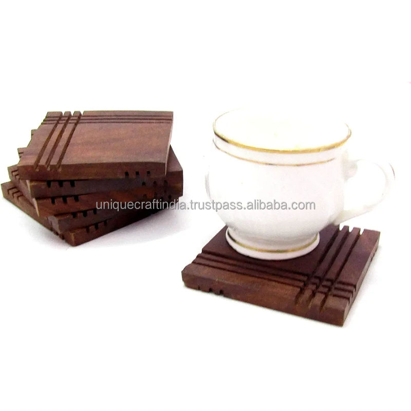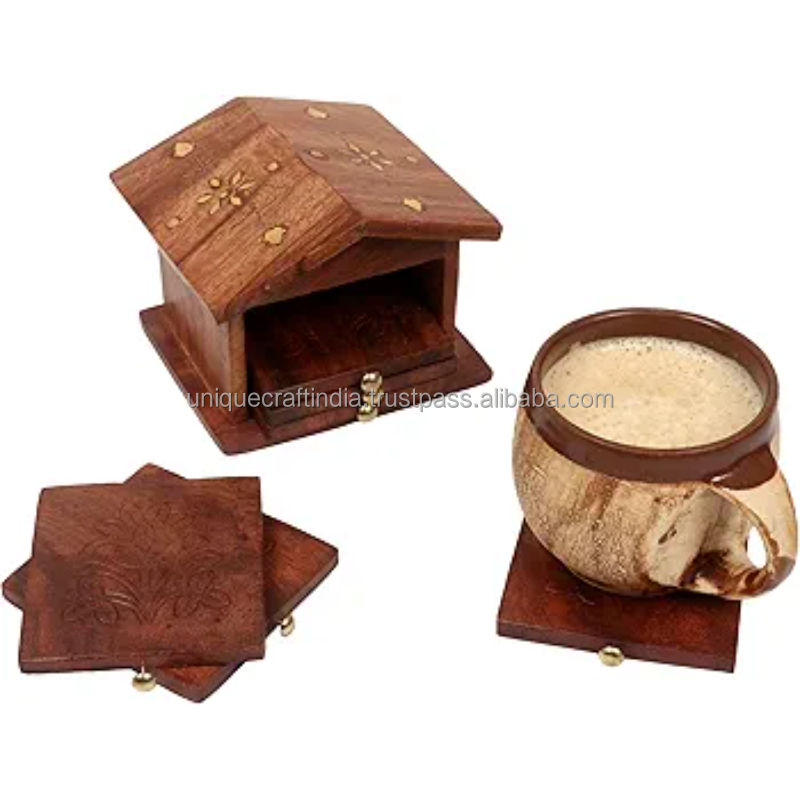 ชุดจานรองแก้วไม้กระถินหกเหลี่ยม 6 ชิ้น | แผ่นรองแก้วไม้ทำมือ | ของตกแต่งโต๊ะแบบธรรมชาติ